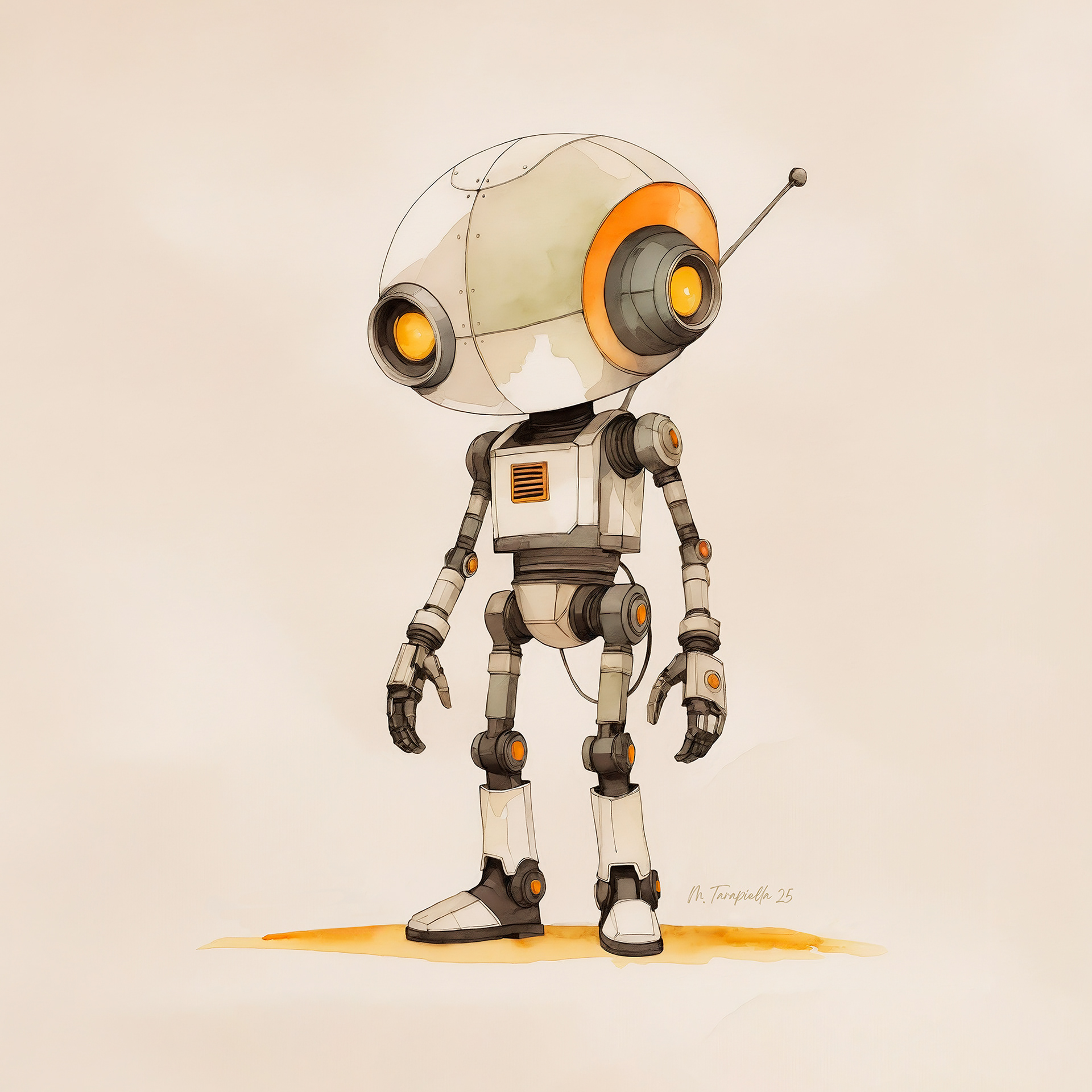 Un pequeño robot frente a lo desconocido, al inicio de su camino.
